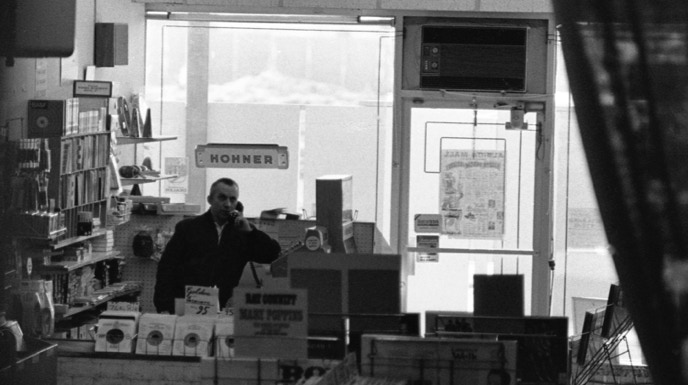 Here is an image taken of Mr. Shultz on the phone, at the front of the original store. I have fond memories of those times, listening to music, selling guitars, and making displays when a new Beatles LP was released.